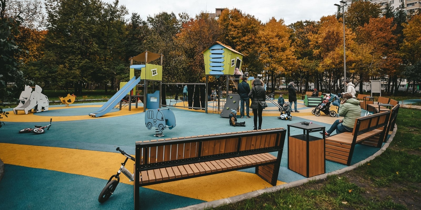 Прогуляться по парку можно по дорожкам общей протяженностью 9,3 км. Они имеют разные типы покрытия - плиточное и асфальтобетонное. Также здесь установили 3 декоративных перголы и 3 беседки, более 800 скамеек и урн.